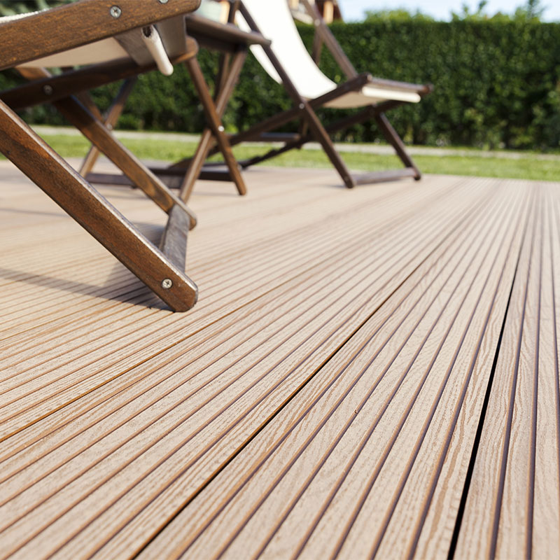 Wir bieten Terrassendielen in unterschiedlichen Materialien, Längen und Oberflächen, unter anderem: