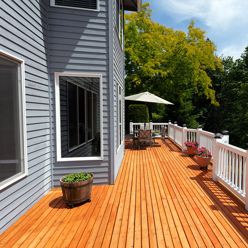 Massivholz-Dielen (z. B. Lärche, Douglasie, Bangkirai)